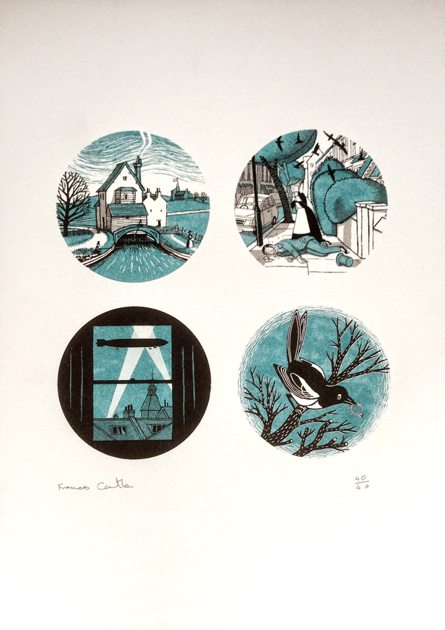 (At this point, Frances looks over to her partner John for suggestions) Have we got any at home? I don’t think we have, have we? I’ve got a poster I did for a Sharron Kraus gig… that’s about it, isn’t it? (John points out a framed print of artwork from The Fields Lie Sleeping Underneath, an album by Frances’s musical alter-ego, The Hardy Tree) Oh, we have got that one! Yes, The Hardy Tree… I forgot about that.