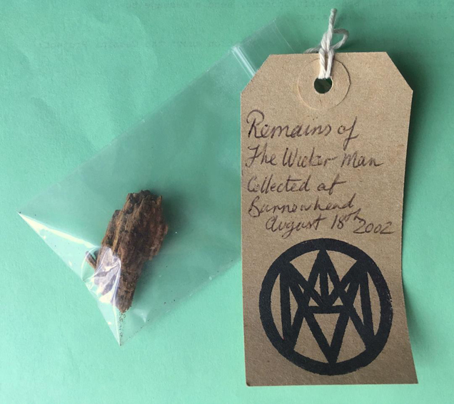 And the legacy of The Wicker Man didn’t just stay with those of us who watched the film. It even made a profound impression on the production’s primary locations – found not on a remote, windswept Hebridean island, but in the gentle countryside of Dumfries and Galloway. Composer, musician, radiophonic experimentalist and proud ‘sound archaeologist’ Drew Mulholland travelled there in 2002, and discovered that substantial parts of the Wicker Man prop itself still stood, concreted into on a coastal path on the Isle of Whithorn. He took photos and made field recordings, and brought back wooden slivers as keepsakes.