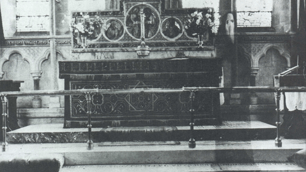 I peered at the book that lay open on his bony knees, and every vital fluid in my body instantly evaporated. My limbs felt cold and lifeless, my senses numbed in a split-second of sheer terror. It was a ghost. Unmistakeably. A towering spectral monk, thin and hollow-eyed, staring straight back at me from a bank of steps beside an austere church altar.