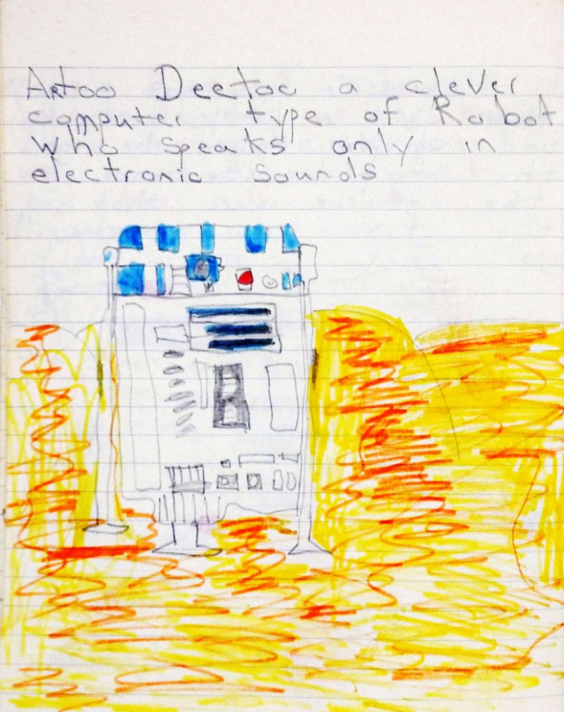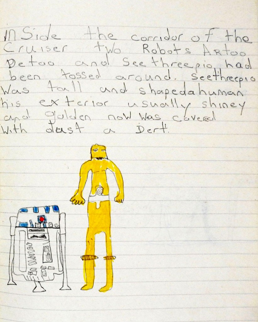 I had a school satchel full of the latter, including C-3PO’s Exercise Book, which I completely filled with Star Wars related drawings and texts. It started out as a catalogue of the Topps Star Wars bubble gum cards I had collected, but I didn’t actually own that many. I completed that task by the end of the first page and was left wondering what to do with the rest of the book.