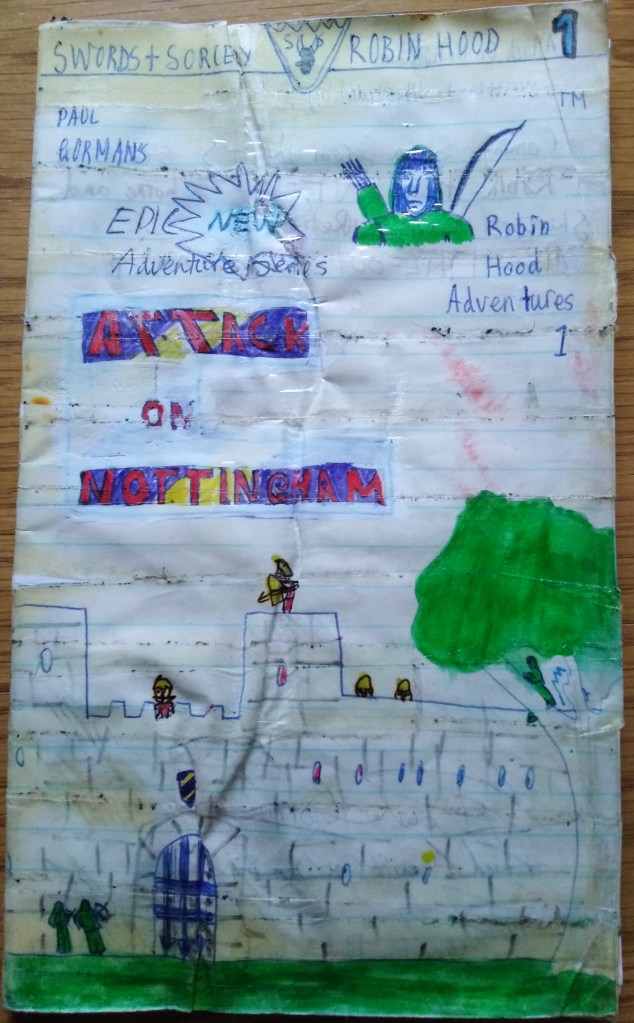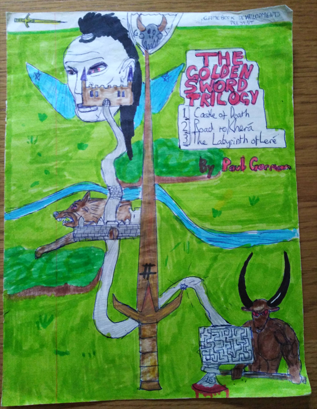 “1986, and our final year of Primary School. While the rest of the class were tumbling and stretching their way to BAGA Gymnastic qualifications, four of us – myself, Will, Rick and David – spent our afternoons designing, drawing and (sometimes) writing our own ‘Swords & Sorcery’ adventure gamebooks.