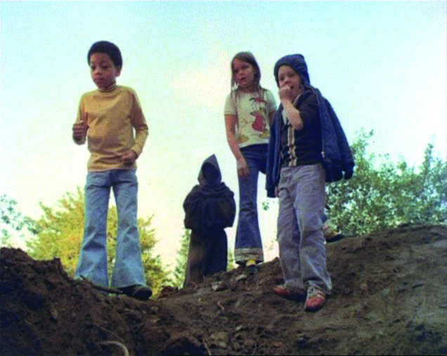 What makes Apaches or The Finishing Line scary is that they mix the dreamlike world with a realist world that’s particularly uncomfortable. One of the extraordinary things about Apaches is… well, the storyline of the film is basically a bunch of kids on a farm, playing cowboys and indians. And one by one, they’re killed in horrible ways – by a combine harvester, by drowning in the slurry pit, etc. I think you described it in your Fortean Times review as being like the Children’s Film Foundation directed by Sam Peckinpah, and I would probably throw a little bit of Ingmar Bergman in there as well! But the really curious thing about it is that, each time one of them dies, they carry on playing there…