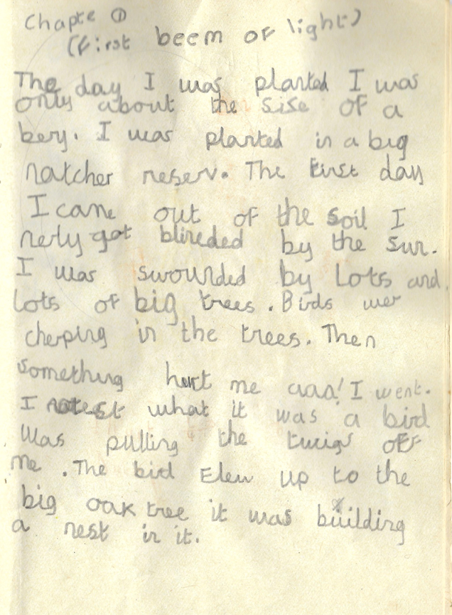 It’s a rather dark tale! Within moments of gaining consciousness, our main character is blinded by the sun and then screams in pain as a bird rips off his branches. It’s probably an insight into why I described myself as an ‘indoors person’ to my family as a kid! I also wonder about the fact that my earliest memories of childhood are of things like falling through the centre of a tyre swing, and cutting my hand open on the broken glass of an old greenhouse. Life is pain, Bob!