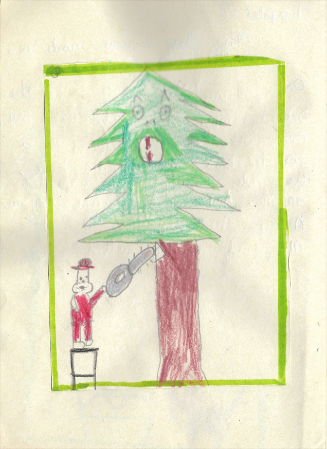 The tree doesn’t particularly enjoy his job over Christmas. He is replanted, only to be brutally chainsawed down – without explanation and before his time.