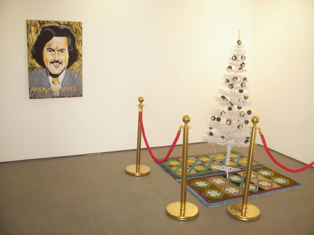 World of Sport supremo Dickie Davies grins down from the adjacent wall, and – in his wake – a wild card exhibit: a silver Christmas tree festooned with shiny baubles, each decorated with the face of a one-time member of The Fall.