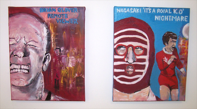The e-mail from Matt at Cherry Red Records was uncannily timed. Would I be interested in attending the opening of Luke HainesUncanny Island exhibition at Eston Arts Centre, and meeting up with Luke to discuss his paintings of Mick McManus, Kendo Nagasaki, Giant Haystacks and Catweazle? To check my inbox, I had literally broken off from re-reading Simon Garfield‘s extraordinary book The Wrestling. Mystical forces were clearly at work. Sweaty, grunting, slightly overweight mystical forces, but mystical forces nevertheless.