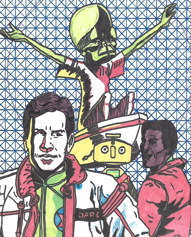 My Dan Dare drawings – inspired by both the original Frank Hampson strip and the 1982 reboot – were probably done around the same time, when I was about 14 years-old…