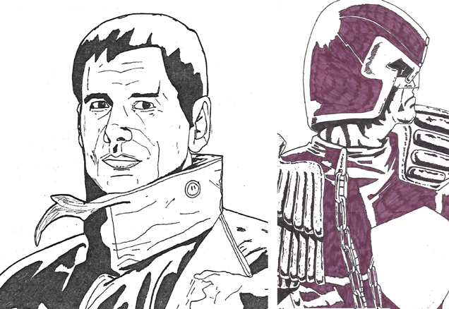 I am unable to date my ‘Rick Deckard’ and ‘Judge Dredd drawings but they were probably around the same time or a little later. The ‘Dredd’ drawing, you will notice, is ‘mixed media’… black felt tip and buggered black felt tip!