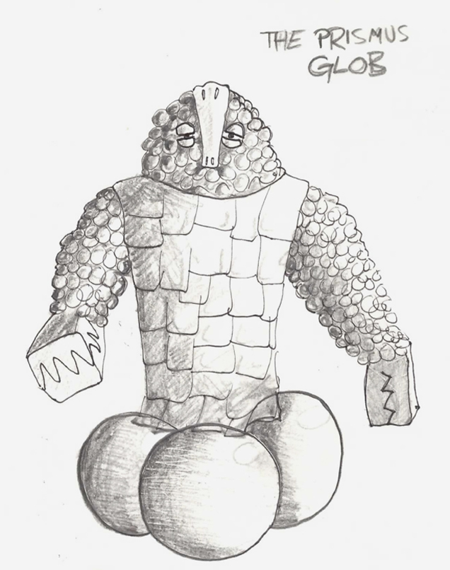“The Prismus Glob was made of green blobs, with a tabard of leathery flaps,” remembers Giles Schumm. “He had a nose with blowholes, gripping hands like an Ice Warrior, and huge rolling balls for feet.”