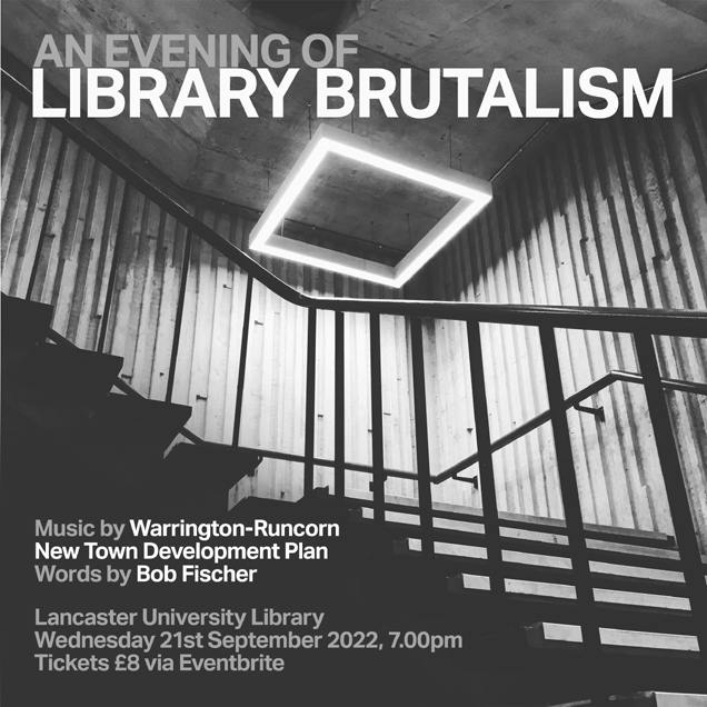 Andrew Barker, Lancaster University’s Director of Library Services said, “We are delighted to welcome back Bob to the university to help us reflect on a time and a place which gave birth to our university, and to welcome our colleague Gordon to the library for his headline set of beautiful analogue electronica. This evening supports our vision to open up our library to all in our communities, and we are all very excited about our Evening of Library Brutalism”.