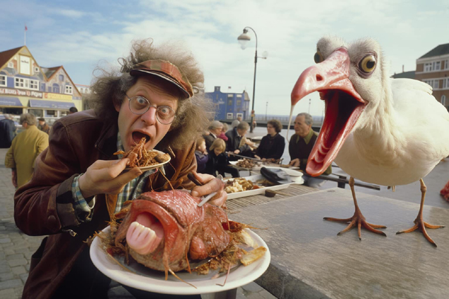 I don’t know if you’ve seen them, but there’s a series of AI photographs that look like a seaside fete with people dressed in 1970s clothes while they interact with sea-monsters. They’re really dreamlike.