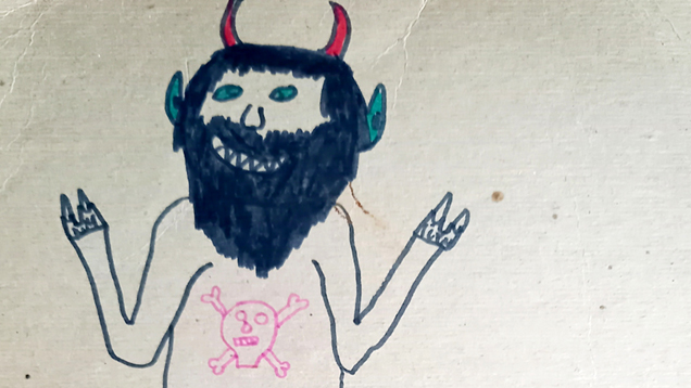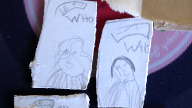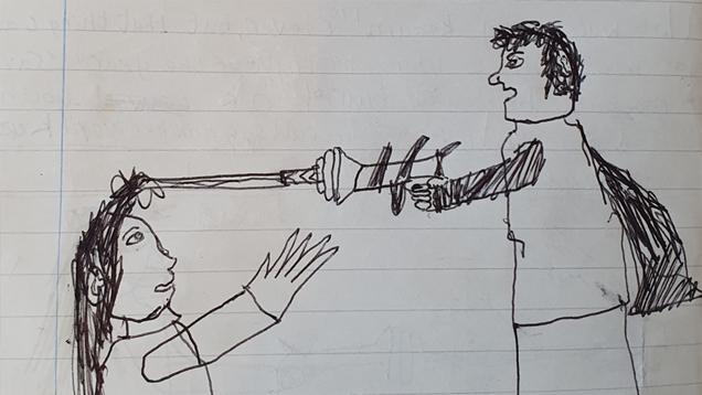 Jack The Ripper by Mark R Jones “I added ‘To mummy and daddy’ next to a big love heart surrounded by kisses. The drawing itself? Someone being beheaded by a guillotine…”