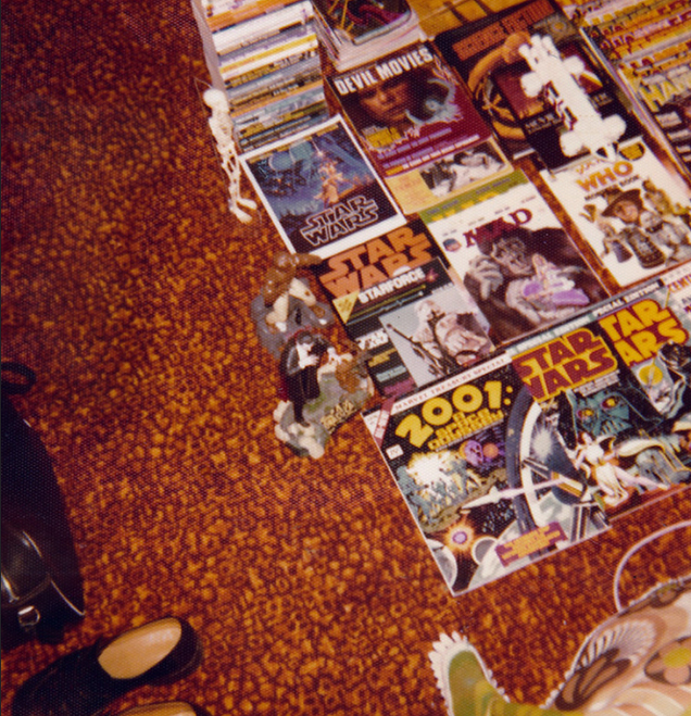 Early one evening I decided it would be a really great idea to take a picture of all my horror and sci-fi models, books, magazines and Star Wars stuff. I spent an hour or so putting them all on the floor, then took a photo with my old Kodak Instamatic X15 camera. I remember feeling very pleased (‘well chuffed’ as we used to say) with myself… unfortunately my skills with my old camera were not that great. I snapped away, and – at the weekend – went along to Tremletts Chemist to get the film processed. Seven days later (you had to be patient back then) I went back to get my photos.